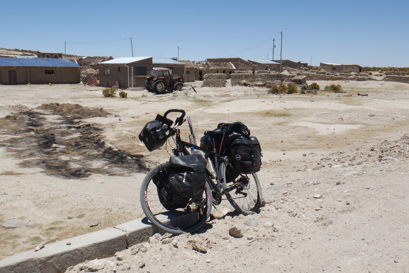 După Andamarca a dispărut și asfaltul, lăsând loc unui drum de pietriș și nisip. Și cum credeam că mă bucur de unul singur de acest drum, mă nene, apare unul pe motoretă și intră în mine. M-am ferit cât am putut, dar tot m-a atins și mi-a rupt suportul cobului de pe spate și mi-a îndoit o pedală. Când l-am întrebat cum naiba a pierdut controlul, mi-a zis că nu vede. Deci tu poți fi cel mai corect biciclist sau șofer și altul inconștient să te omoare. Cam așa stă treaba. Și chiar într-una din cele mai izolate regiuni, unde nu te-ai aștepta.